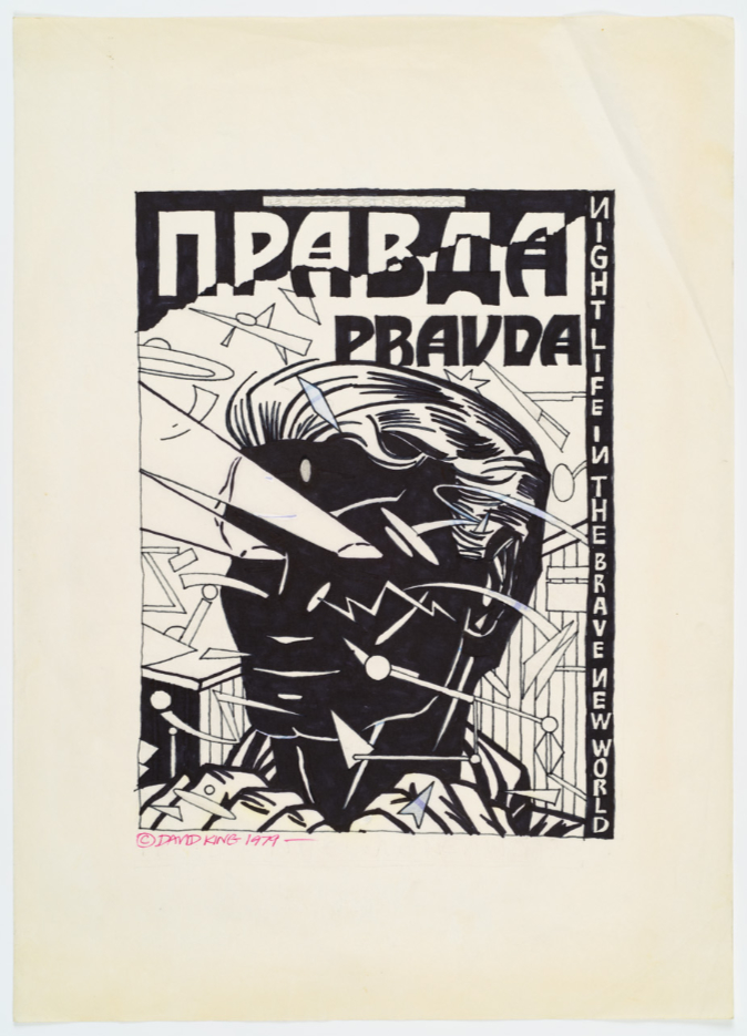 Pravda nightclub, New York, 12 x 16.5", ink, graphite, correction fluid, and pen on wax paper, original design, 1979 ![]()