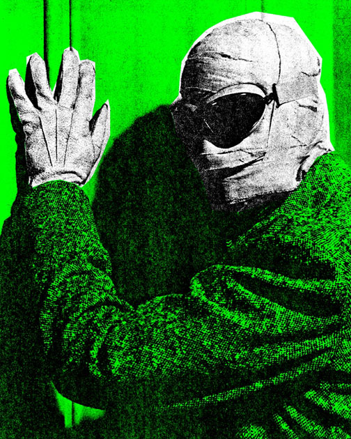 on topics that included rock formations in early Western films, masked film characters, and comic book heroes. The works drew on his sprawling collections of peculiar objects