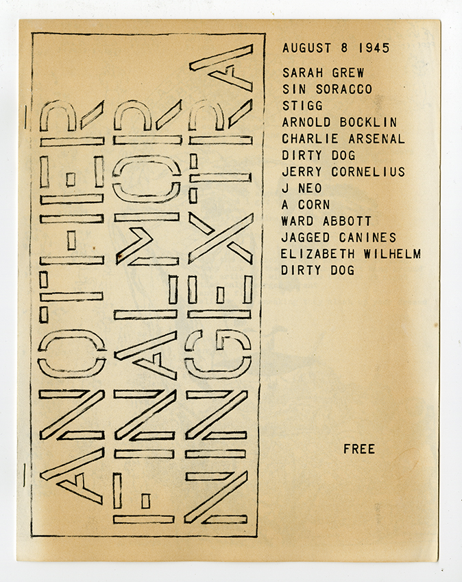 Another Final Morning Extra, 14pp, Xerox, 8.5 x 11", staple bound, 1980s Contributors: Sarah Grew, Sin Soracco, Stigg, Arnold Bocklin, Charlie Arsenal, Dirty Dog, Jerry Cornelius, J Neo, A Corn, Ward Abbott, Jagged Canines, Elizabeth Wilhelm, Dirty Dog ![]()